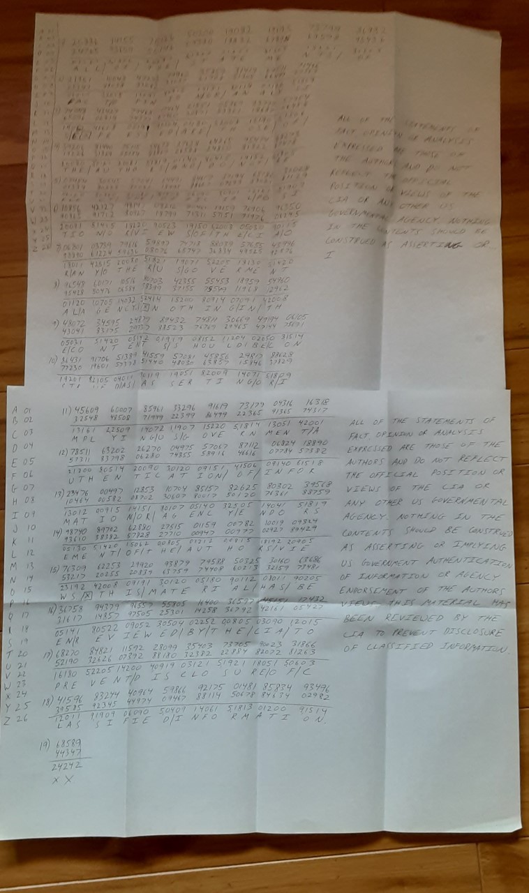 In the Cold War days (and still today) US intelligence communicated with Russian agents through a variety of means. First of all, an agent is an asset and not a CIA employee. In Russia, an example of an agent was a defected KGB officer who was providing information to US intelligence. As it was imperative that the agent’s identity was kept secret, the CIA was forced to be extremely creative in delivering instructions. One such conduit was the One-Time Pad (OTP). An agent would use this column of numbers (only once as the name suggests) to match against a delivered batch of numbers and decipher a message. A way that this could work is if the agent would listen in to a certain frequency on a radio, during a certain time frame, and receive a batch of numbers. For example: He would listen for a sequence of numbers on his regularly tuned in radio station between 6:30AM – 6:40AM (during his ritualistic morning coffee). He would listen at the same time every day in order to maintain a cover and shield any reason for suspicion. When the day arrived that a span of numbers were conveyed he would write them down and match them with his OTP. Once deciphered the numbers would be changed to letters, ultimately revealing a message. Although there is a little bit more that goes into the OTP, this gives one an idea of how it works. Let’s try one!